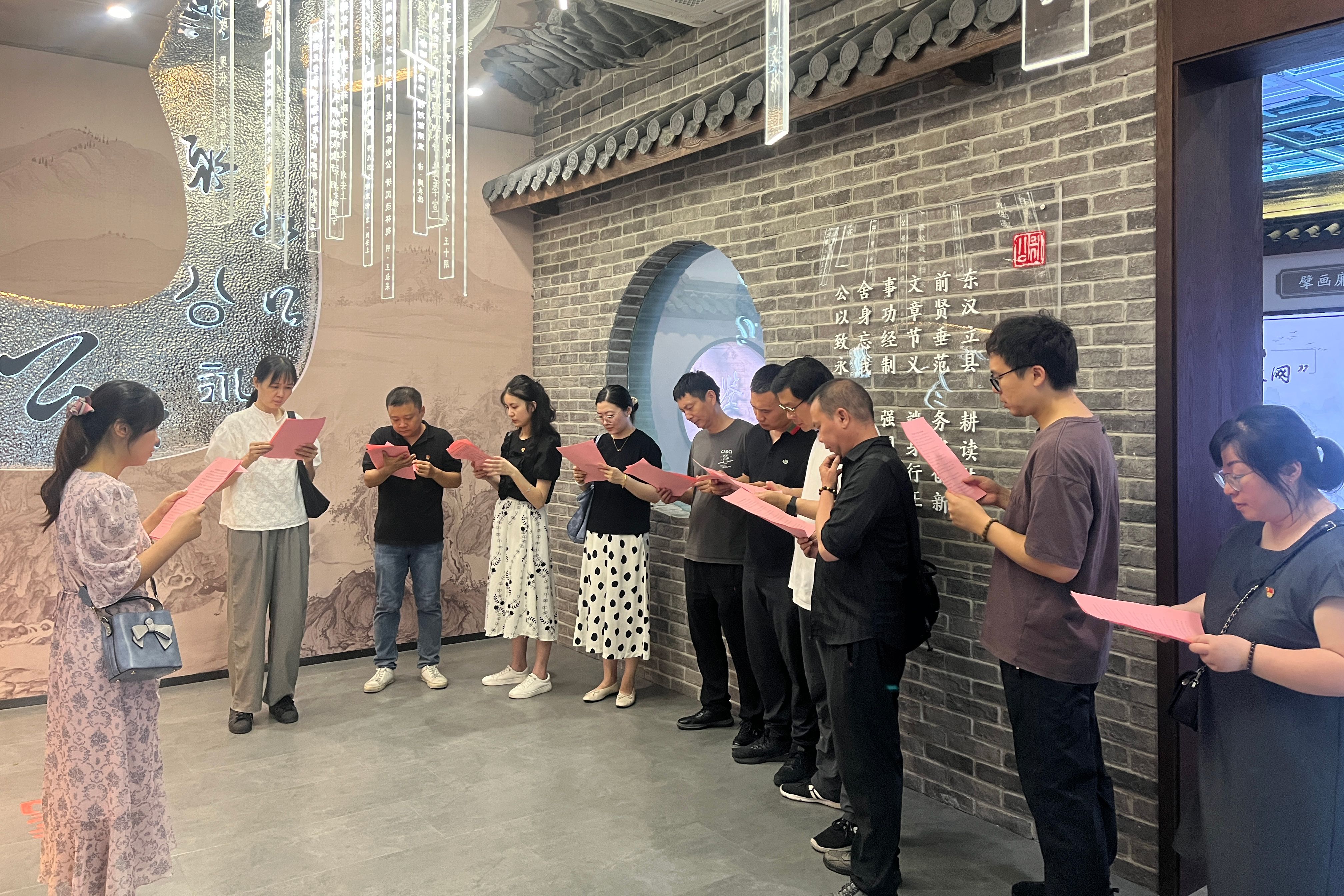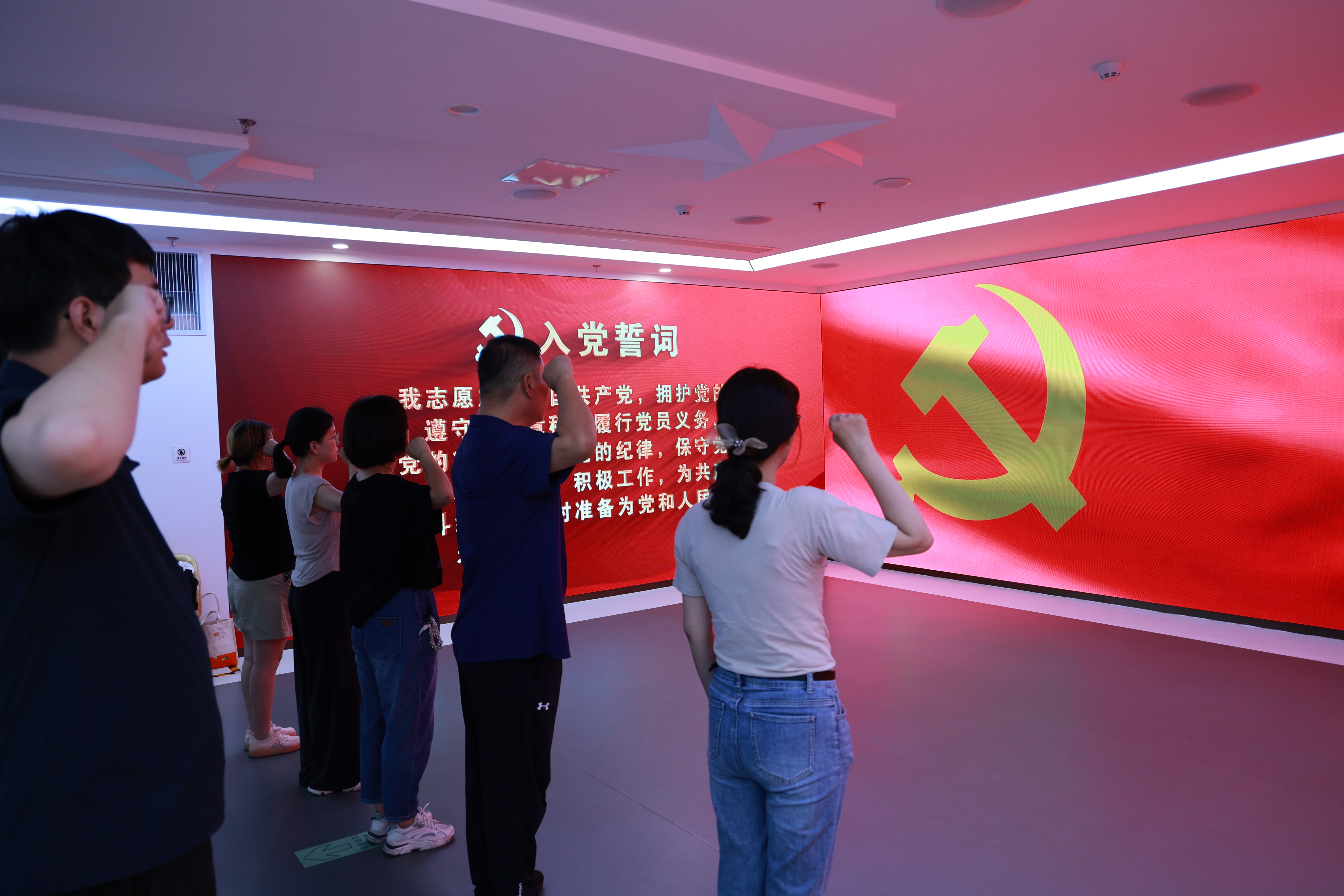 隨后大家參觀(guān)了甌江紅黨建人才綜合體。在講解員的引導下,依次參觀(guān)了時(shí)光走廊、紅色理想區和主題黨日館等等。一張張歷史照片,一幕幕紅色影片,帶黨員們了解了幾百年前的光輝歷史,深入學(xué)習了中共黨史和溫州黨史的紅色歷程,期間黨員們還共同學(xué)習習近平總書(shū)記十次考察寧波舟山港指示精神并重溫了入黨誓詞。