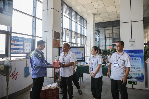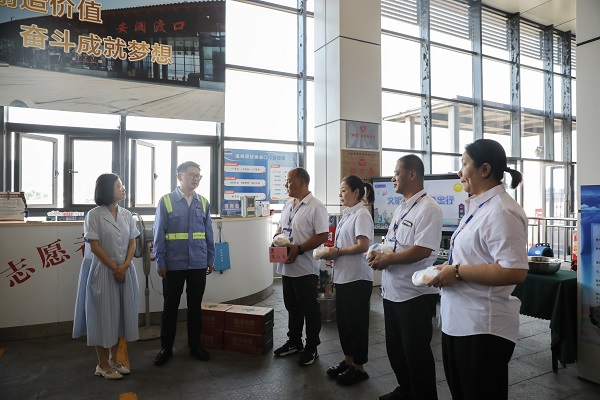 溫州港集團黨委委員、副總經(jīng)理陳俊赴物管公司為一線(xiàn)員工送上夏日清涼