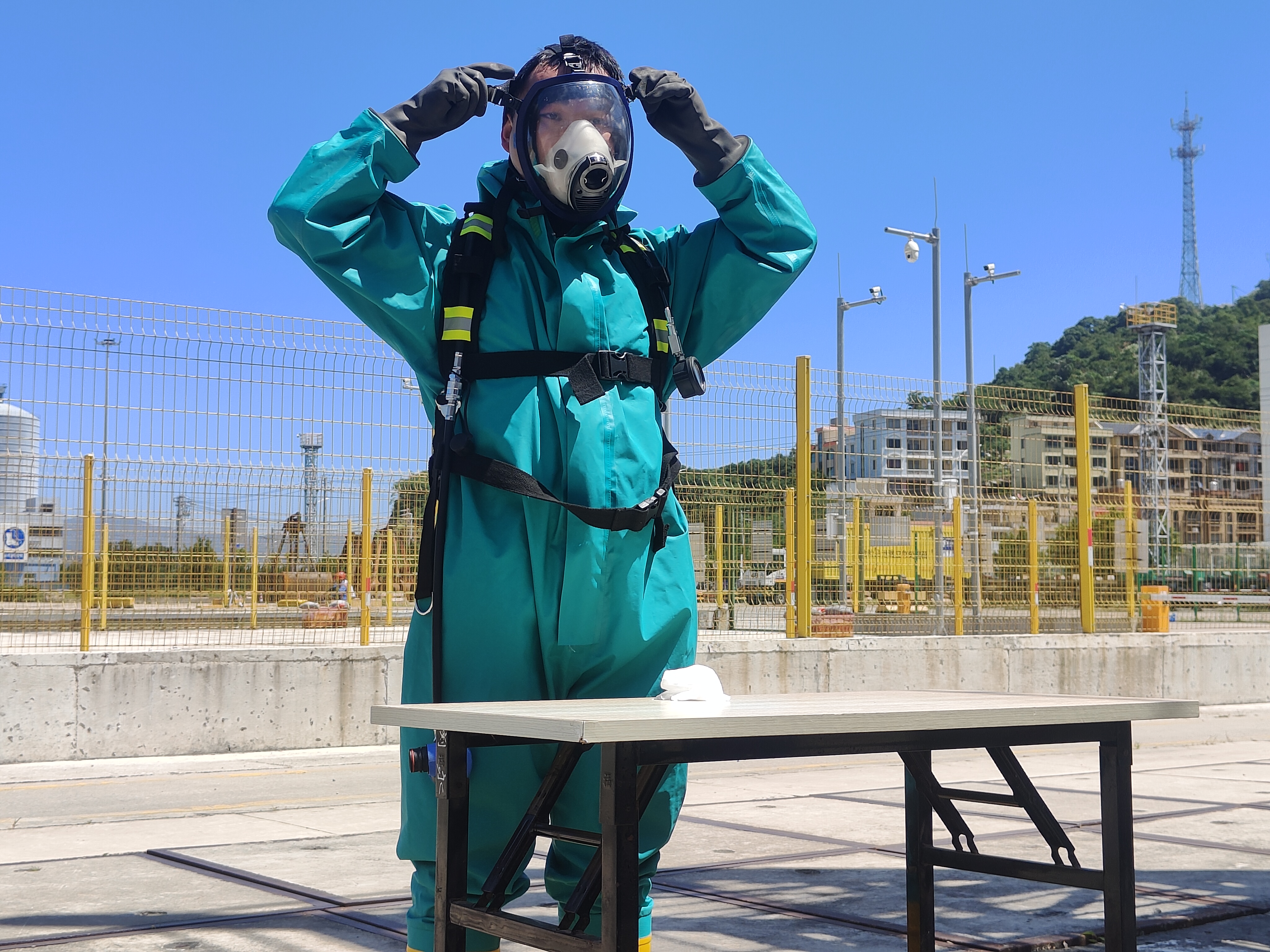 本次技能競賽項目緊貼實(shí)戰,設置了理論和實(shí)操考核,其中實(shí)操考核分為穿戴輕型防化服和正壓式空氣呼吸器、一人兩盤(pán)水帶連接操2個(gè)項目。參賽選手賽出精湛技能,穿戴防化服時(shí)動(dòng)作規范、嚴謹細致;在連接水帶時(shí)爭分奪秒、精誠合作,充分展現港口工人良好的技能水平和昂揚的職業(yè)精神風(fēng)貌。