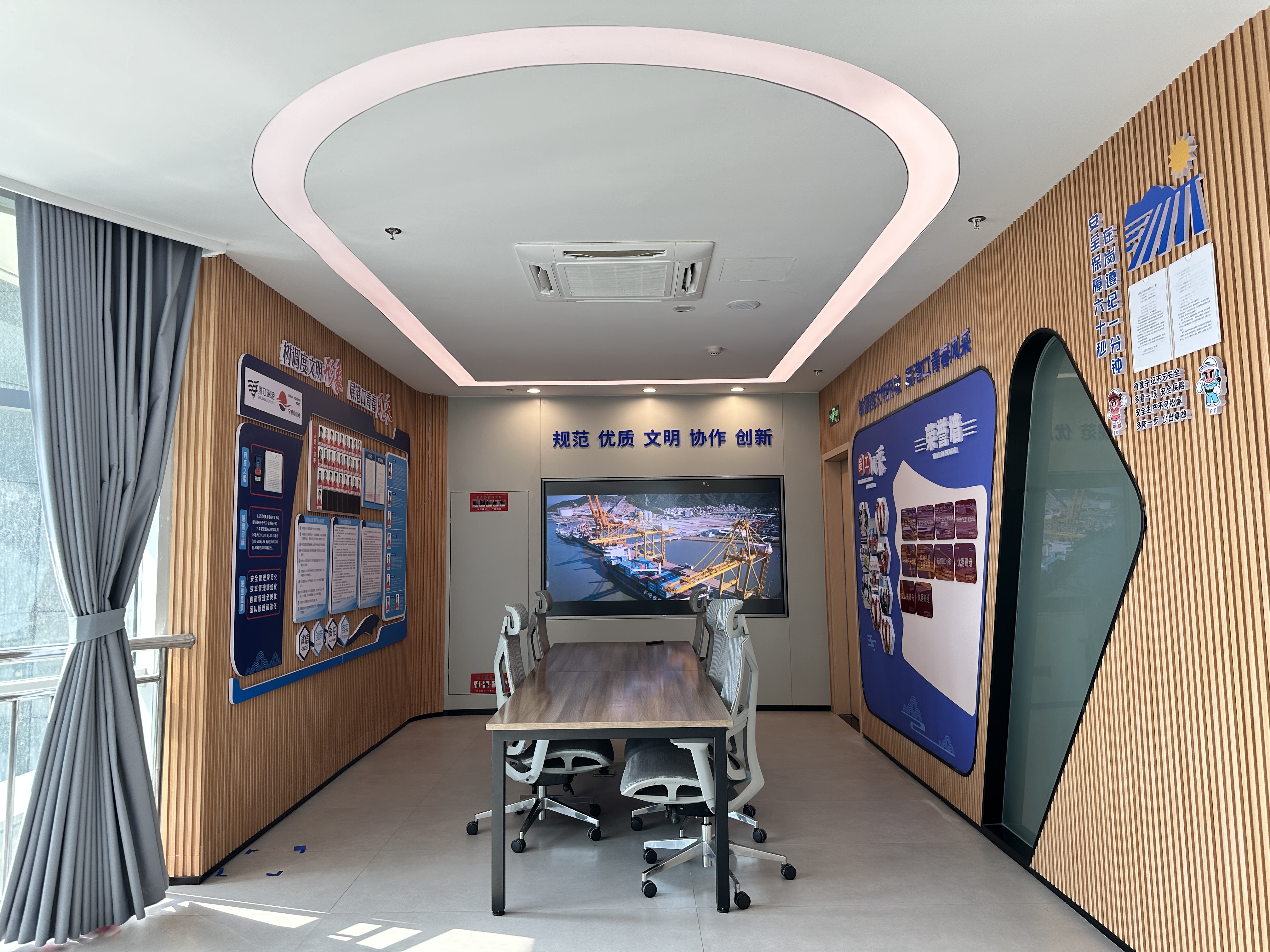 據了解,作為港區生產(chǎn)過(guò)程指揮調度的關(guān)鍵處理中心和重要對外展示窗口,中控室的硬件設備和軟件設施大部分已不能滿(mǎn)足生產(chǎn)需要,亟需更換。本次改造升級共投入資金約90萬(wàn)元,通過(guò)對中控室場(chǎng)地重新合理布局,翻新吸頂和地板,對線(xiàn)路進(jìn)行系統梳理并重新布控,更換編程、調試軟件,更新會(huì )議一體機、操作臺、曲面屏臺式電腦等硬件設備及配套附屬設施,拆除原有的監控視頻電視,在操作臺前重新設置了一面由12塊55寸液晶屏組合而成的液晶視頻墻,實(shí)現了對中控室生產(chǎn)監控系統的全面升級,強化了中控操作穩定性,優(yōu)化了設備的運行速度,使中控室整體煥然一新,中控調度人員坐在中控操作臺前,便能將生產(chǎn)現場(chǎng)的景象盡收眼底,及時(shí)掌握現場(chǎng)生產(chǎn)運行情況。